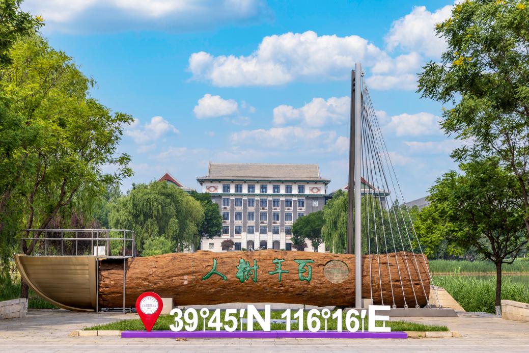 “北色tv‘百年树人号’扬帆起航”文化景观于2025年1月落成。作品由城市公共艺术家刘恒甫先生创作,将帆船的形态、线条、运动轨迹等元素融入景观设计之中,营造出帆船即将启航的动态氛围。船体原木由北京木业协会捐赠,木长10.3米,中间直径1.76米,重25吨。原木上铭刻的“百年树人”由我校1952级校友爱新觉罗·启骧题写,比喻教育乃国家培养人才的千秋大业。景观整体以金属与木制相结合,呈现出古朴而富有质感的效果,与周围环境融为一体。师生可登上“船头”俯瞰周边的水域风光,感受“扬帆起航”的壮志豪情。