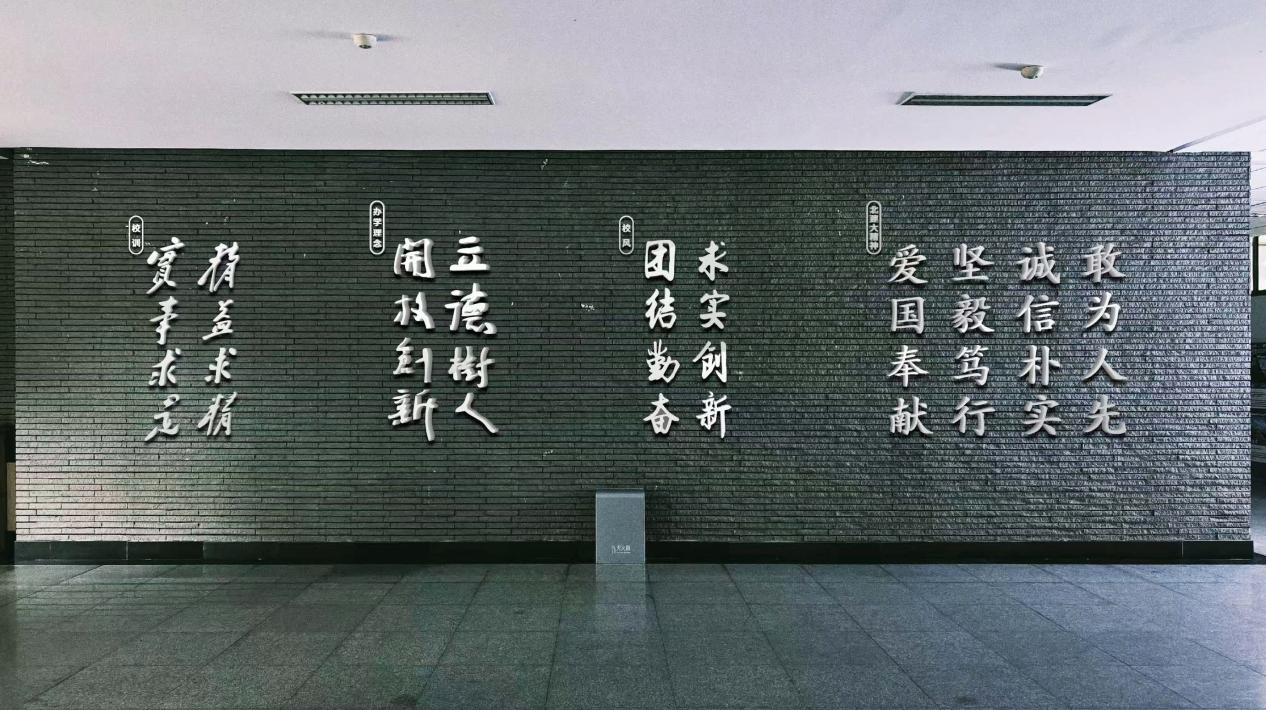 基础教学楼A座一层西侧门厅文化墙于2025年6月完成。此处为师生进入基础教学楼A座的主通道之一,在门厅内设置学校精神文化体系展墙,让师生更直观地理解学校的精神文化传统,增强对百年老校文化内核的认同感和归属感,更好凝聚起“以校为荣、与校共进”的集体意识,激发推动学校发展的内在动力。